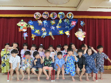 | 7月6日に行われた夏まつりの様子です!みんなでアンパンマン音頭を踊りましたよ♪ お家の方に楽しく踊っているところを見てもらってとっても嬉しそうな子どもたちでした☆ くじびきボックスやさかなつりなど、お店屋さん巡りも楽しかったね! |